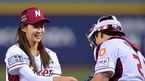 [OSEN=목동,박준형 기자] 28일 오후 서울 목동구장에서 열린 한국야쿠르트 세븐 프로야구 플레이오프 2차전 넥센과 LG의 경기에 앞서 애프터스쿨 유이가 시구 후 넥센 박동원 포수에게 시구공을 전달받고 있다 유이는 김성갑 넥센