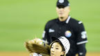[OSEN=잠실, 최규한 기자] 30일 오후 서울 잠실구장에서 '2014 한국야쿠르트 세븐 프로야구' 포스트시즌 플레이오프 3차전 LG 트윈스와 넥센 히어로즈의 경기가 열렸다. LG 양상문 감독이 시구자로 나선 에이핑크 손나은과 윤보미에