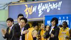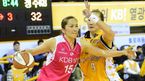 [OSEN=청주, 최규한 기자] 1일 오후 충청북도 청주 실내체육관에서 '2014-2015 KB국민은행 여자프로농구' 개막전 청주 KB스타즈와 구리 KDB생명의 경기가 열렸다. 3쿼터 종료 직후 KB스타즈 선수들이 하이파이브를 나누고 있다. KB스타