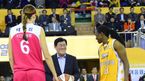 [OSEN=청주, 최규한 기자] 1일 오후 충청북도 청주 실내체육관에서 '2014-2015 KB국민은행 여자프로농구' 개막전 청주 KB스타즈와 구리 KDB의 경기가 열렸다. 1쿼터 KBD 안세환 감독이 KB스타즈 홍아란과 KBD 이경은의 아웃 상황과 관련해