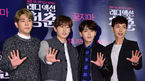 [OSEN=백승철 기자] 5일 오후 서울 롯데시네마 건대입구에서 열린 영화 '레디액션 청춘' VIP 시사회에서 슈퍼주니어가 포토타임을 갖고 있다. 영화 '레디액션 청춘'은 학교에선 왕따 걱정, 졸업하면 군대 걱정, 제대하면 취업 걱정