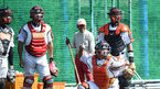 [OSEN=오키나와, 민경훈 기자] 6일 오전 일본 오키나와 고친다 구장에서 한화 이글스 2014 마무리 캠프가 진행됐다. 호루쿠보 배터리 코치가 포수들에게 공을 던져주며 훈련을 시키고 있다. 김성근 감독이 이끄는 한화 이글스는
