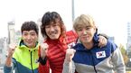 [OSEN=이대선 기자] 6일 오후 서울 신촌로 차없는거리에서 가수 김장훈의 신곡 뮤직비디오 촬영이 진행됐다. 가수 김장훈과 슈퍼주니어 강인, 이특이 뮤직비디오 촬영에 앞서 취재진을 향해 포즈를 취하고 있다. 이달 컴백하는