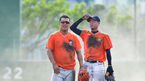 [OSEN=오키나와, 민경훈 기자] 6일 오전 일본 오키나와 고친다 구장에서 한화 이글스 2014 마무리 캠프가 진행됐다. 정근우과 이도윤이 펑고 훈련을 하고 있다. 김성근 감독이 이끄는 한화 이글스는 마무리 캠프에서 김태균·정근