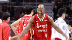 [OSEN=안양, 백승철 기자] 7일 오후 안양시 안양실내체육관에서 열린 '2014-2015 KCC 프로농구' 안양 KGC인삼공사와 서울 SK의 경기 종료 후 윌리암스가 KGC 마스코트와 장난을 치고 있다. 박찬희와 오세근이 나란히 더블-더블을 기록한