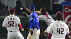 [OSEN=목동, 지형준 기자] 7일 오후 서울 목동야구장에서 열린 '2014 한국야쿠르트 세븐 프로야구 포스트시즌' 넥센 히어로즈와 삼성 라이온즈의 한국시리즈 3차전, 5회말 1사에서 넥센 로티노가 선제 솔로포를 날리고 더그아웃에