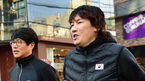[OSEN=곽영래 기자] 7일 오후 서울 홍대 일대에서 가수 김장훈의 신곡 뮤직비디오 촬영이 진행됐다. 가수 김장훈과 성시경이 팬들과 이야기를 나누고 있다. 이달 컴백하는 김장훈이 신곡의 뮤비 콘셉트를 마라톤+나눔+캠페인으