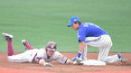 [OSEN=목동, 손용호 기자] 8일 오후 서울 목동야구장에서 열린 '2014 한국야쿠르트 세븐 프로야구 포스트시즌' 넥센 히어로즈와 삼성 라이온즈의 한국시리즈 4차전, 1회말 서건창이 도루를 시도 세이프가 선언되자 김상수가 아쉬