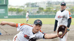 [OSEN=오키나와, 민경훈 기자] 8일 오전 일본 오키나와 고친다 구장에서 한화 이글스 2014 마무리 캠프가 진행됐다. 김성근 감독이 직접 펑고를 치는 펑고를 김태완이 몸을 날려 잡아내고 있다. 김성근 감독이 이끄는 한화 이글스