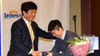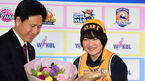 [OSEN=백승철 기자] 11일 오전 서울 여의도동 63컨벤션센터에서 열린 2015 WKBL 신입선수 선발회에서 1라운드 1순위로 KDB생명에 지명된 안혜지가 안세환 감독과 기념촬영을 하고 있다. 이번 신입선수선발회는 고교 졸업 예정 선수 13