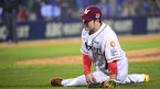 [OSEN=잠실, 손용호 기자] 11일 오후 서울 잠실야구장에서 열린 '2014 한국야쿠르트 세븐 프로야구 포스트시즌' 삼성 라이온즈와 넥센 히어로즈의 한국시리즈 6차전,6회초 무사 1루 박병호가 김상수의 번트타구를 수비하다 미끄러