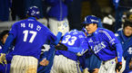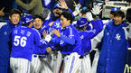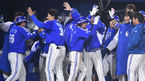 [OSEN=잠실, 박준형 기자] 11일 오후 서울 잠실야구장에서 열린 '2014 한국야쿠르트 세븐 프로야구 포스트시즌' 삼성 라이온즈와 넥센 히어로즈의 한국시리즈 6차전,3회초 1사 만루 삼성 채태인의 선취 2타점 적시타때 기뻐하는 삼