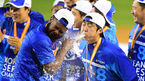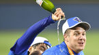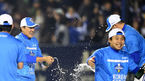 [OSEN=잠실, 민경훈 기자] 한국시리즈 우승컵은 고비마다 실책을 남발한 넥센 히어로즈를 버리고 삼성 라이온즈의 품에 안기며 통합 4연패라는 대기록을 선물했다. 이승엽이 샴페인을 뿌리고 있다. 삼성은 11일 잠실구장에서 열