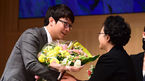 [OSEN=부산, 정송이 기자] '전설의 투수' 故 최동원을 기리고 한국 야구 발전을 위해 제정된 ‘무쇠팔 최동원상’의 첫 시상식이 11일 오후 부산 남구 부산은행 본점 대강당에서 진행됐다. 최동원상을 수상한 양현종이 김정자 여