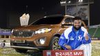 기아차가 한국시리즈 우승팀 삼성라이온즈의 나바로 선수에게 '올 뉴 쏘렌토'를 선물했다. 기아자동차는 지난 11일 잠실야구장에서 열린 한국시리즈 6차전이 끝난 뒤 MVP로 선정된 나바로 선수(삼성 라이온즈)에게 부상으로 대