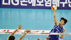 [OSEN=구미, 민경훈 기자] 18일 오후 경상북도 구미시 광평동 박정희체육관에서 열린 '2014-2015 NH농협 V-리그' LIG손해보험과 대한항공의 경기, 1세트 LIG손해보험 에드가가 강타를 날리고 있다. 문용관 감독이 지휘하는 LIG손해보험