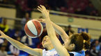 [OSEN=부천, 지형준 기자] 19일 오후 부천실내체육관에서 KB국민은행 2014-2015 여자프로농구 부천 하나외환과 용인 삼성 블루밍스의 경기가 열렸다. 1쿼터 하나외환 이유진이 삼성블루밍스 고아라를 슛블록하고 있다. 1라운드가 끝