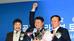 [OSEN=정송이 기자] 7일 오후 서울 강남구 골프존타워 서울에서 진행된 '2014 골프존 라이브 토너먼트 대상' 시상식에서 GLT 대상을 수상한 한석천이 석교상사 이민기 김영찬 회장과 기념촬영을 하고 있다./ouxou@osen.co.kr