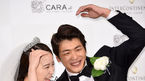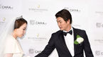 [OSEN=이대선 기자] 14일 오후 SK 와이번스의 김광현이 서울 삼성동 인터컨티넨탈 서울 코엑스 하모니볼룸에서 신부 이상희(29) 씨와 백년가약을 맺었다. SK 김광현이 포토월에서 신부와 환하게 웃고 있다. 신랑 김광현과 신부 이상