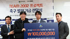 [OSEN=이대선 기자] 29일 오전 서울 신문로 축구회관에서 'TEAM 2002 프로젝트 축구 발전 기금 전달식'이 열렸다. 김정남 한국OB축구회장과 신영록, 홍명보 TEAM 2002 대표를 비롯한 관계자들이 기념촬영을 하고 있다. /sunday@osen.co.kr