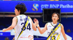 [OSEN=인천, 최규한 기자] 2일 오후 인천 도원체육관에서 '2014-2015 KB국민카드 여자프로농구' 신한은행과 KDB생명의 경기가 열렸다. 3쿼터, 신한은행 김단비가 3점슛을 성공시킨 뒤 하은주와 인사를 나누고 있다. 홈팀 신한은행은