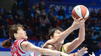 [OSEN=인천,박준형 기자] 4일 오후 인천 도원체육관서 열린 'KB국민은행 2014-2015 여자프로농구' 인천 신한은행과 부천 하나외환의 경기, 3쿼터 하나외환 이유진이 신한은행 곽주영의 슛을 블록성공하고 있다. 신한은행은 지난 2일