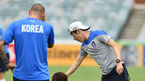 [OSEN=캔버라(호주), 민경훈 기자] 9일 오후 호주 캔버라 스타디움서 열린 한국 축구대표팀의 훈련때 신태용 코치가 한교원의 머리를 쓰다듬고 있다. 울리 슈틸리케 감독이 이끄는 한국 축구대표팀은 오는 10일(이하 한국시간) 오