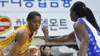 [OSEN=춘천, 곽영래 기자] 9일 오후 춘천호반체육관에서 'KB국민은행 2014-2015 여자프로농구' 춘천 우리은행과 안산 신한은행의 청주 KB 스타즈의 경기가 열렸다. 2쿼터 KB 스타즈 비키바흐가 우리은행 굿렛을 상대로 돌파를 시도하
