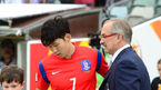 [OSEN=캔버라(호주), 민경훈 기자] 10일 오후(한국시간) 호주 캔버라 스타디움에서 '2015 AFC 아시안컵 조별리그 1차전' 한국-오만의 경기가 열렸다. 전반 한국 손흥민이 슈틸리케 감독과 이야기를 나누고 있다. 55년 만의 아시아 정