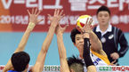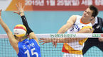 [OSEN=수원, 곽영래 기자] 15일 오후 수원 실내체육관에서 '2014-2015 NH농협 V-리그' 한국전력과 우리카드의 경기가 열렸다. 한국전력 쥬리치가 우리카드 신으뜸의 공격을 막아내고 있다. 한국전력은 시즌성적 11승 10패(승점31점)으로