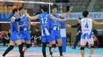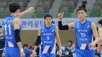 [OSEN=수원, 곽영래 기자] 15일 오후 수원 실내체육관에서 '2014-2015 NH농협 V-리그' 한국전력과 우리카드의 경기가 열렸다. 4세트 우리카드 선수들이 기뻐하고 있다. 한국전력은 시즌성적 11승 10패(승점31점)으로 4위, 원정팀 우리카