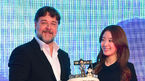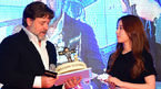 [OSEN=최규한 기자] 할리우드 배우 러셀 크로우가 19일 오후 서울 자양동 롯데시네마 건대입구에서 진행된 영화 '워터 디바이너' 레드카펫 행사에 참석해 배우 이세영에게 케이크 선물을 건네받고 있다. 배우 러셀 크로우는 영화