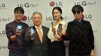 [OSEN=정자랑 기자]LG G플렉스2 국내 출시를 기념해, 왼쪽부터 최범석 디자이너, 조성하 LG MC사업본부 부사장, 배우 오연서, 고태용 디자이너가 제품을 들고 포즈를 취하고 있다. 오연서와 최범석, 고태용 디자이너는 G플렉스2의