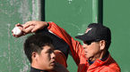 [OSEN=고치, 이대선 기자] 24일 일본 시코쿠 고치현 고치시영야구장에서 한화 이글스의 스프링캠프 훈련이 진행됐다. 한화 김성근 감독이 권혁을 지도하고 있다. 10개 구단 중 가장 먼저 전지훈련지로 떠난 한화는 오는 3월 3일까