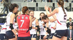 [OSEN=장충체육관, 곽영래 기자] 25일 오후 서울 장충체육관에서 열린 'NH농협 2014~2015 V-리그 올스타전' 니콜이 스파이크 서브 퀸에 등극한 문정원과 기뻐하고 있다. 프로배구 최고 스타선수들이 출전하는 올스타전은 K-스타 팀(남