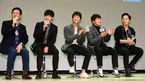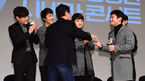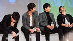 [OSEN=정송이 기자] 영화 '쎄시봉'(감독 김현석) 감성 충만 시네마 콘서트가 26일 오후 서울 성균관대학교 600주년 기념관 새년홀에서 진행됐다. 정우의 각선미가 드러난 사진을 보자 강하늘 정우 조복래 진구가 미소짓고 있다. '쎄