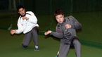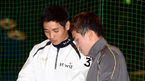 [OSEN=미야자키(일본),박준형 기자] 29일 오전 kt위즈의 스프링 캠프가 차려진 일본 미야자키(宮崎)현 휴가(日向)시의 다이오타니 야구장에서 kt위즈 김영환과 김선민이 수비 훈련을 서로의 손을 바라보고 있다. 조범현 감독을 비