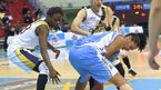 [OSEN=부천, 곽영래 기자] 30일 오후 경기도 부천시 부천실내체육관에서 열린 'KB국민은행 2014-2015 여자프로농구' 하나외환과 신한은행의 경기, 1쿼터 하나외완 토마스가 신한은행 샌포드의 수비로 인해 공을 놓치고 있다. 하나외