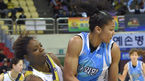 [OSEN=부천, 곽영래 기자] 30일 오후 경기도 부천시 부천실내체육관에서 열린 'KB국민은행 2014-2015 여자프로농구' 하나외환과 신한은행의 경기, 1쿼터 신한은행 샌포드가 하나외환 토마스의 공을 빼앗고 있다. 하나외환은 시즌성