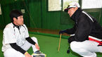 [OSEN=미야자키(일본),박준형 기자] 30일 kt위즈의 스프링 캠프가 차려진 일본 미야자키(宮崎)현 휴가(日向)시의 다이오타니 야구장에서 kt위즈 정명원 투수코치와 정대현이 이야기를 나누고 있다. 조범현 감독을 비롯한 코칭스태