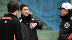 [OSEN=미야자키(일본),박준형 기자] 30일 kt위즈의 스프링 캠프가 차려진 일본 미야자키(宮崎)현 휴가(日向)시의 다이오타니 야구장 실내연습장에서 kt위즈 조범현 감독이 훈련에 앞서 이광근 수석코치, 주장 신명철과 이야기를