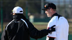 [OSEN=미야자키(일본),박준형 기자] 31일 kt위즈의 스프링 캠프가 차려진 일본 미야자키(宮崎)현 휴가(日向)시의 오쿠라가하마 구장에서 kt위즈 시스코가 정명원 코치와 이야기를 나누고 있다. 조범현 감독을 비롯한 코칭스태프,