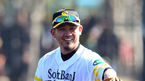 [OSEN=미야자키(일본),박준형 기자] 1일 오후 일본 미야자키(宮崎) 이키메노모리 운동공원 내 아이비스타디움에서 진행된 일본 프로야구 소프트뱅크 스프링캠프,마쓰자카가 훈련 중 미소 짓고 있다. 9년 만에 일본으로 돌아온 마