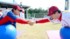 [OSEN=오키나와(일본), 최규한 기자] 2일 오후 일본 오키나와 킨 구장에서 '2015 KIA 타이거즈 스프링캠프'가 진행됐다. KIA 투수 양현종과 새 외국인 투수 필립 험버가 짐볼을 이용한 밸런스 훈련 중 게임을 펼치고 있다. KIA타이거즈