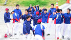 [OSEN=오키나와(일본), 최규한 기자] 2일 오후 일본 오키나와 킨 구장에서 '2015 KIA 타이거즈 스프링캠프'가 진행됐다. KIA 투수들이 김기태 감독과 가위바위보로 달리기 훈련을 진행하며 환하게 미소짓고 있다. KIA타이거즈가 2015시