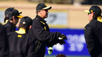 [OSEN=미야자키(일본),박준형 기자] 3일 오후 일본 미야자키(宮崎) 이키메노모리 운동공원 내 아이비스타디움에서 진행된 일본 프로야구 소프트뱅크 스프링캠프,이대호가 동료들과 손짓으로 이야기를 하고 있다. 예년보다 4kg정