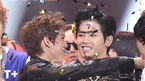 [OSEN=김경섭 기자] 3일 오후 서울 마포구 상암동 SBS 프리즘타워에서 'SBS MTV 더 쇼 시즌4' 무대가 펼쳐졌다. 인피니트 H 동우, 호야가 더쇼 초이스 수상후 댄서들과 기쁨을 나누고 있다. 한편 이날 생방송에는 나인뮤지스, 써니힐, 6