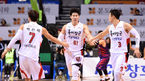 [OSEN=고양, 이대선 기자] 5일 오후 경기 고양체육관에서 '2014-2015 KCC 프로농구' 고양 오리온스와 안양 KGC의 경기가 열렸다. 4쿼터 KGC 오세근이 슛을 성공시키고 동료들과 환호하고 있다. 오리온스는 2연승 후에 상위권인 동부, SK,