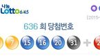 로또 636회 당첨번호 [OSEN=이슈팀]로또 636회 당첨번호가 발표됐다. 7일 나눔로또에 의하면 636회 로또 당첨번호가 6, 7, 15, 16, 20, 31으로 정해졌다. 636회로또당첨번호 중 보너스 번호는 26이다. 당첨번호 6개를 모두 적중시킨 636회