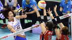 [OSEN=대전, 김경섭 기자] 10일 오후 대전 충무실내체육관에서 2014-2015 NH농협 V-리그 인삼공사와 도로공사의 경기가 열렸다. 1세트 인삼공사 백목화가 도로공사 장소연 , 이효희의 수비를 피해 공격을 시도하고 있다. 인삼공사는